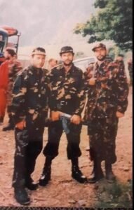 Këtu në foto e shihni atdhetarin e pashuar Sali Çekajn, njëri nga bashkautorët e planit për thyerjen e kufirit në Koshare në vitin 1999, dhe me armë në krah në vitin 1991 në ushtrimet ushtarake në Shqipëri.