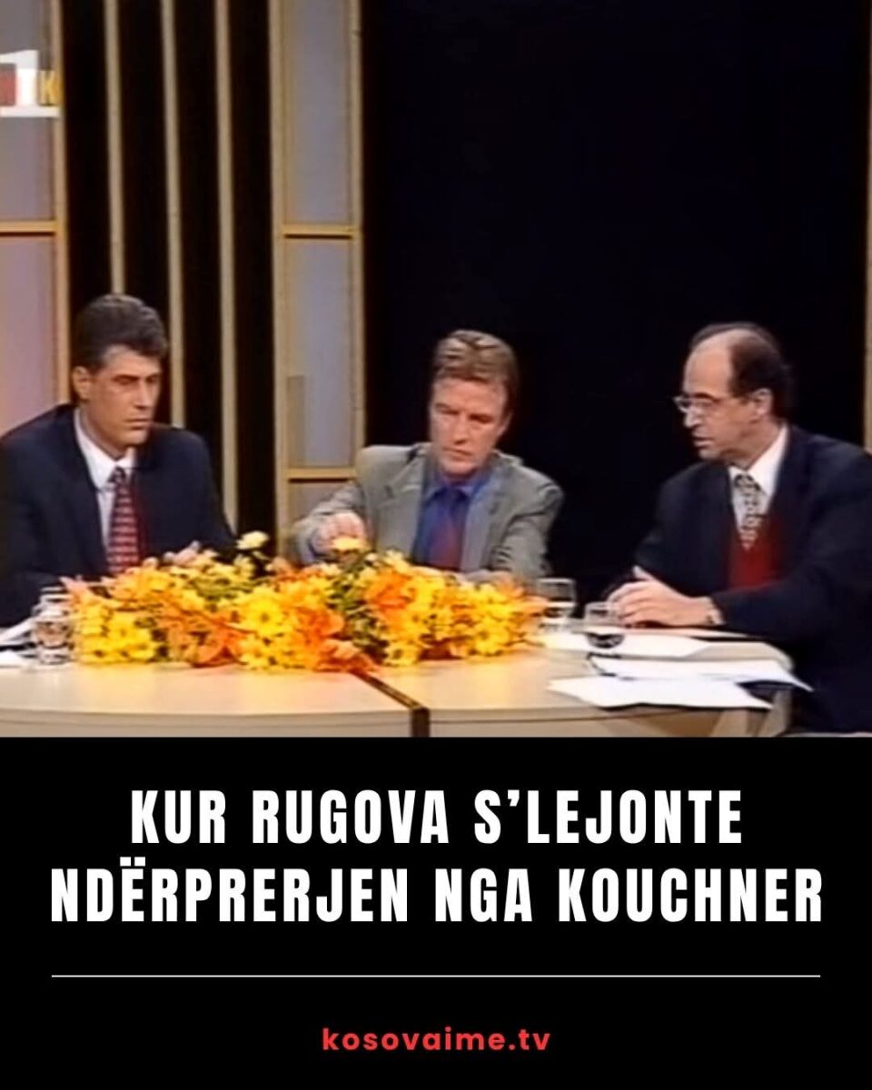 Megjithatë, Rugova nuk e lejoi të ndërpritej nga ana e Kouchnerit.“Jo, mfal, mfal, duhet t’i them mendimet e mia se janë përzi punët dhe ka shumë propagandë…” – vazhdon me shpjegimin e tij Rugova.