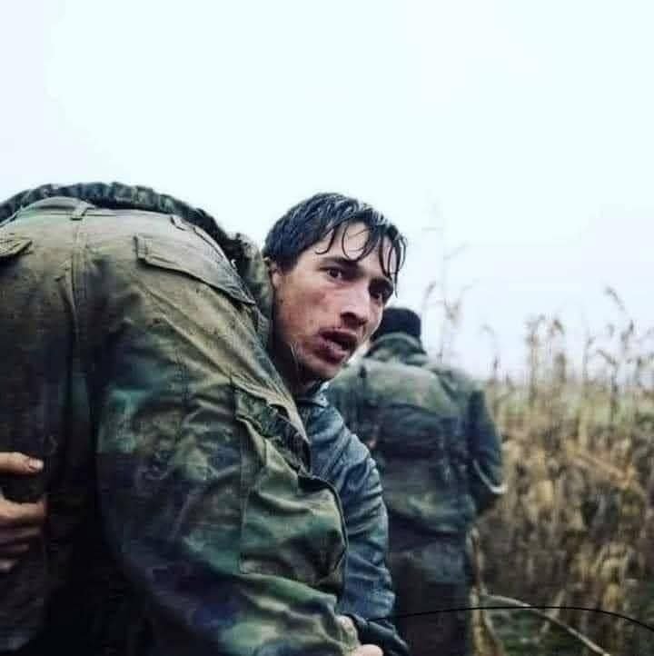 Ky është shqiptari Besim Vokshi, ku në këtë foto mund ta shihni duke bartur shokun e tij të plagosur, nga Vukovari në Vinkovci në Luftën e Mbrojtjes së Kroacisë … 16./17.