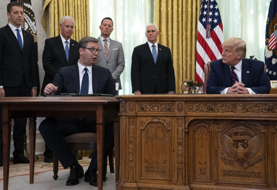 Foto nga arkivi: Aleksandër Vuçiç dhe Donald TrumpSerbia po kërcënohet nga Shtetet e Bashkuara të Amerikës me një tarifë prej të paktën 500 për qind për të gjitha mallrat që i eksporton në shtetin amerikan.