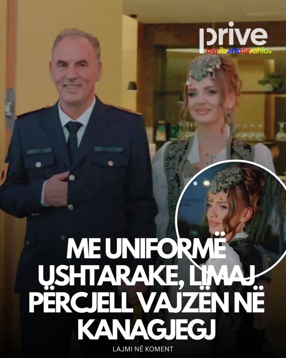 Në pamjet e ndara nga fotografi i njohur Norik Uka, ai shihet me uniformë ushtarake teksa përcjell vajzën në sallë.