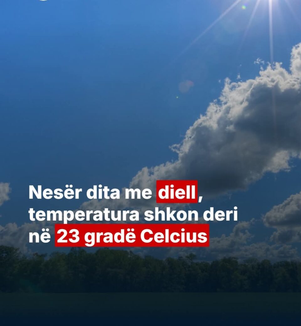 Dita e hënë pritet të karakterizohet me mot kryesisht me diell dhe vranësira të shpërndara.Temperaturat minimale do të lëvizin ndërmjet 1 dhe 4 gradë Celsius, ndërsa maksimalet do të arrijnë nga 18 deri në 23 gradë Celsius.