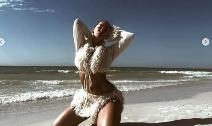 Ajo theksoi belin e hollë si dhe të pasmet e bujshme duke u shfaqur si “bombë”./Indeksonline