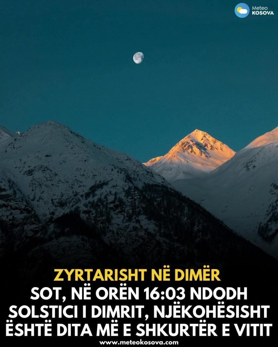 Solstici i dimrit nuk është vetëm një datë në kalendar, por një pikë kthese natyrore. Edhe pse dimri sapo ka filluar, nga sot dita nis rrugëtimin e saj drejt zgjatjes, duke na afruar gradualisht drejt stinëve më të ndritshme të vitit. /MeteoKosova/