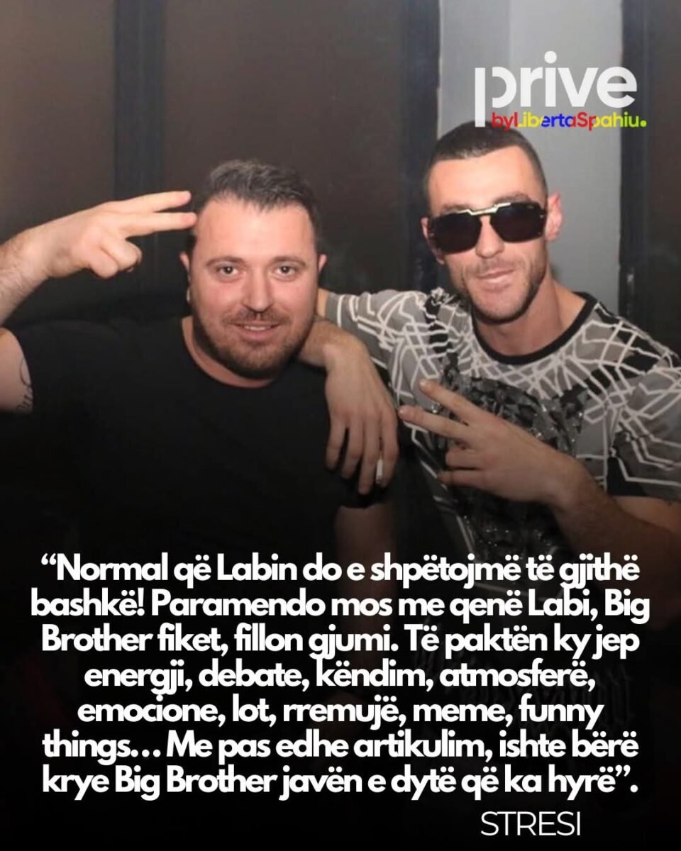 “Normal që Labin do e shpëtojmë të gjithë bashkë! Paramendo mos me qenë Labi, Big Brother fiket, fillon gjumi. Të paktën ky jep energji, debate, këndim, atmosferë, emocione, lot, rremujë, meme, funny things… Me pas edhe artikulim, ishte bërë krye Big Brother javën e dytë që ka hyrë,” ka shkruar Stresi në postimin e tij, duke vlerësuar dinamikën që Labi i sjell lojës.