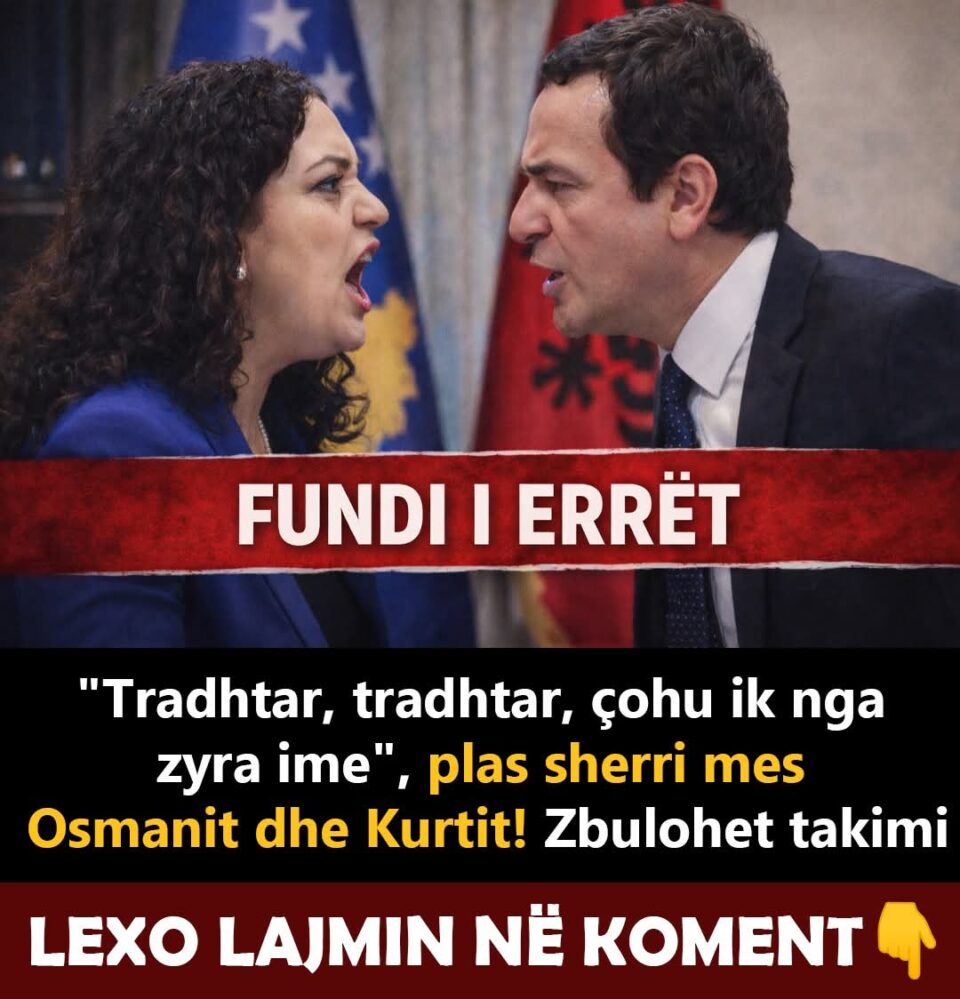 Përplasje e fortë në majat e shtetit në Kosovë! Raportohet se një debat i ashpër ka shpërthyer mes Presidentes së Kosovës, Vjosa Osmani, dhe kryeministrit Albin Kurti.Sipas deklaratave të bëra nga Selatin Retkoci në emisionin Vip Magazine, gjatë një takimi mes tyre situata është tensionuar deri në akuza të rënda dhe tone shumë të ashpra.Retkoci pretendon se në atë përplasje janë dëgjuar edhe thirrje si “tradhtar”, duke ngritur dyshime për një krizë serioze mes dy figurave më të larta të politikës në vend.SHIKO VIDEON KËTU