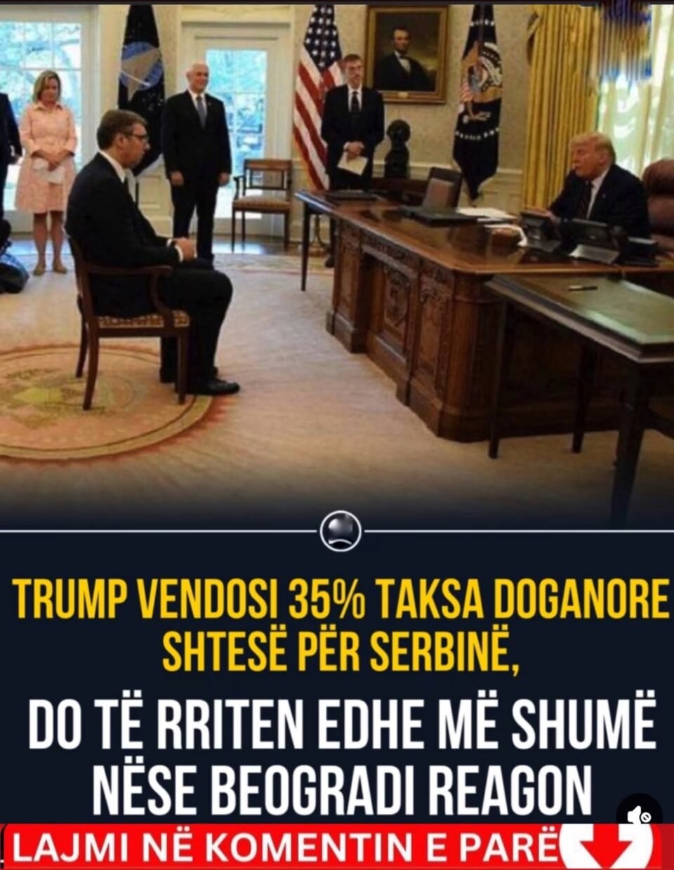 Trump paralajmëroi se do të ketë rritje të mëtejshme të taksave nëse Beogradi🇷🇸 vendos të përgjigjet me masa të ngjashme ndaj importeve amerikane