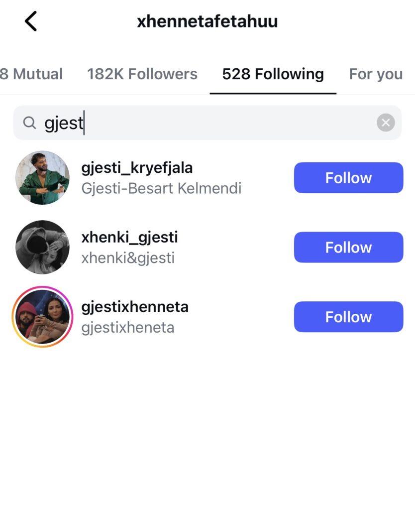 Megjithatë, Xheneta ndjek disa faqe që lidhen me Gjestin, e të cilat herë pas here edhe editojnë video të tyre të përbashkëta sa ishin pjesë e këtij formati televiziv.